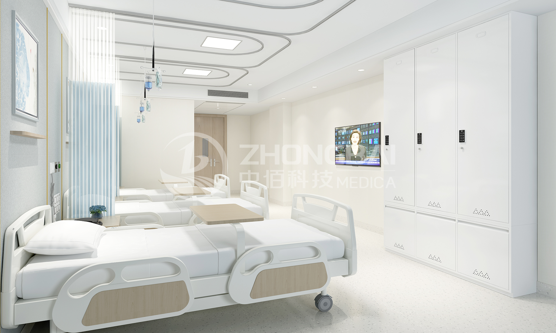 病房衣柜汲取了現代國際水平的中醫設計元素,造型簡練,比例勻稱,結構嚴謹,做工精細。極致體現了一個智能、耐用、環保、抗菌和舒心的護理環境。